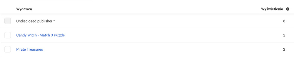 Jak widzisz na powyższym przykładzie, reklamy tego reklamodawcy wyświetlały się w tylko dwóch aplikacjach, bo wyłączam to umiejscowienie, gdy stosuję reklamy wideo.