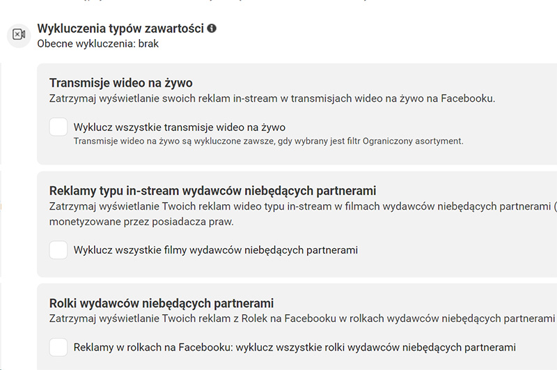 Audience Network to wciąż mocno niszowe umiejscowienie, które głównie wyświetla reklamy wideo w aplikacjach mobilnych. Jeżeli tworzysz kreacje wideo i nie chcesz przepalać budżetu, to w wielu sytuacjach warto je wyłączyć.